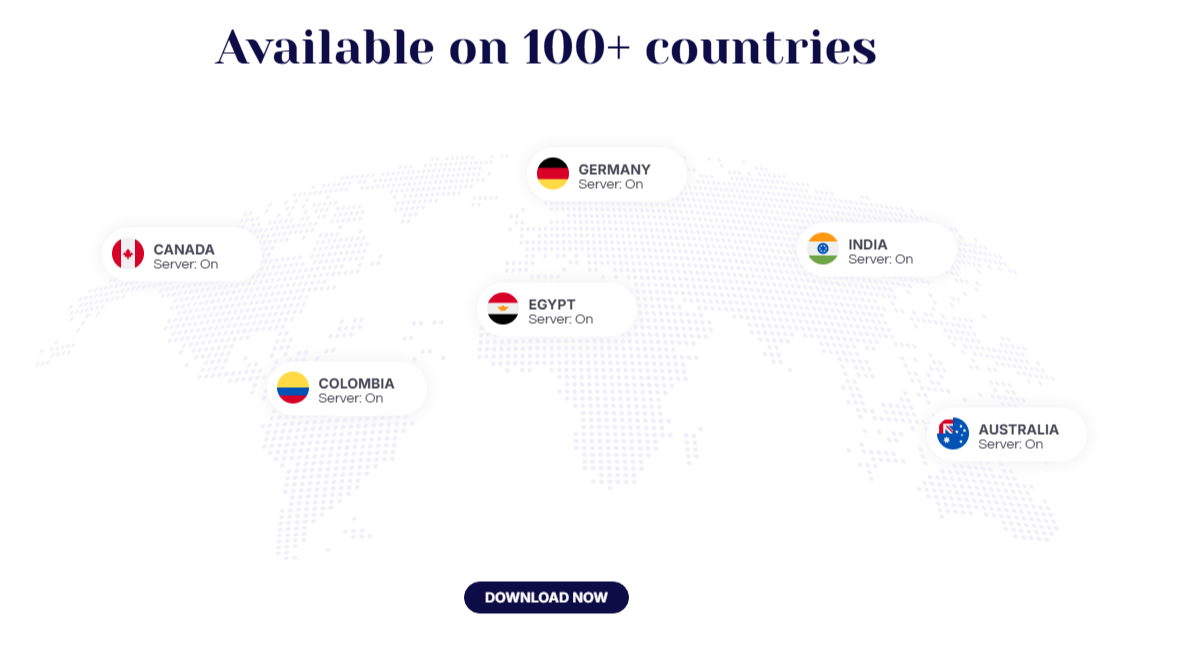 To position Connvi as an established and reliable company, this section was designed to showcase their global scale. The headline, "Available on 100+ countries," is paired with a dynamic world map graphic highlighting their active server presence. This visual proof of a secure and widespread network (from Canada to Australia) builds significant trust and reassures potential customers of the platform's stability.