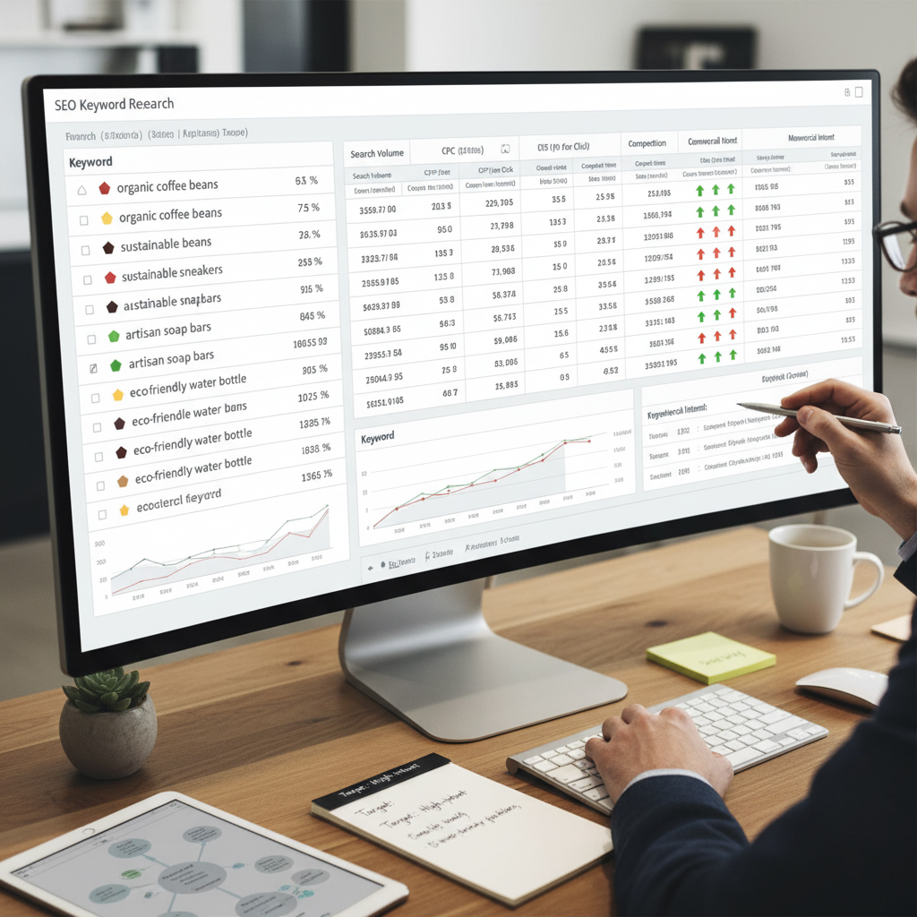 A winning SEO campaign starts with a winning keyword strategy. We don’t just find keywords; we identify the exact search terms that your highest-value customers are using to make buying decisions.